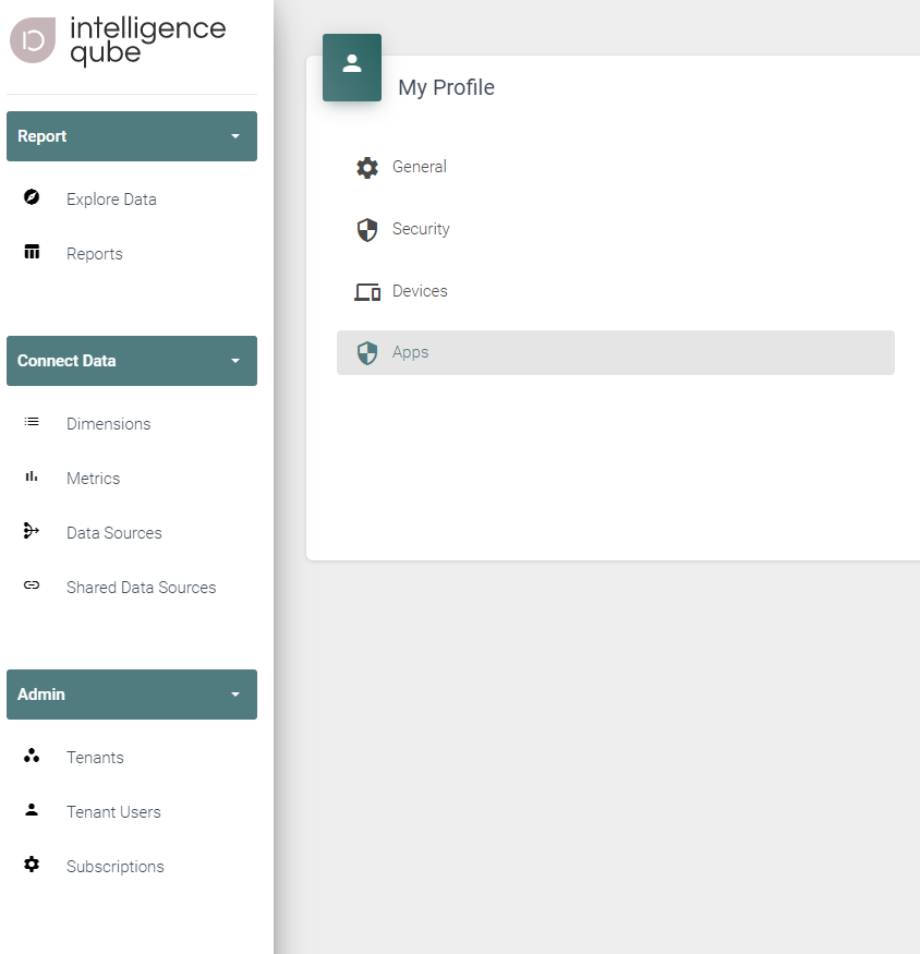 Gehen Sie dazu über Ihren User in der oberen, rechten Ecke auf Ihr Profil und navigieren zu APPs