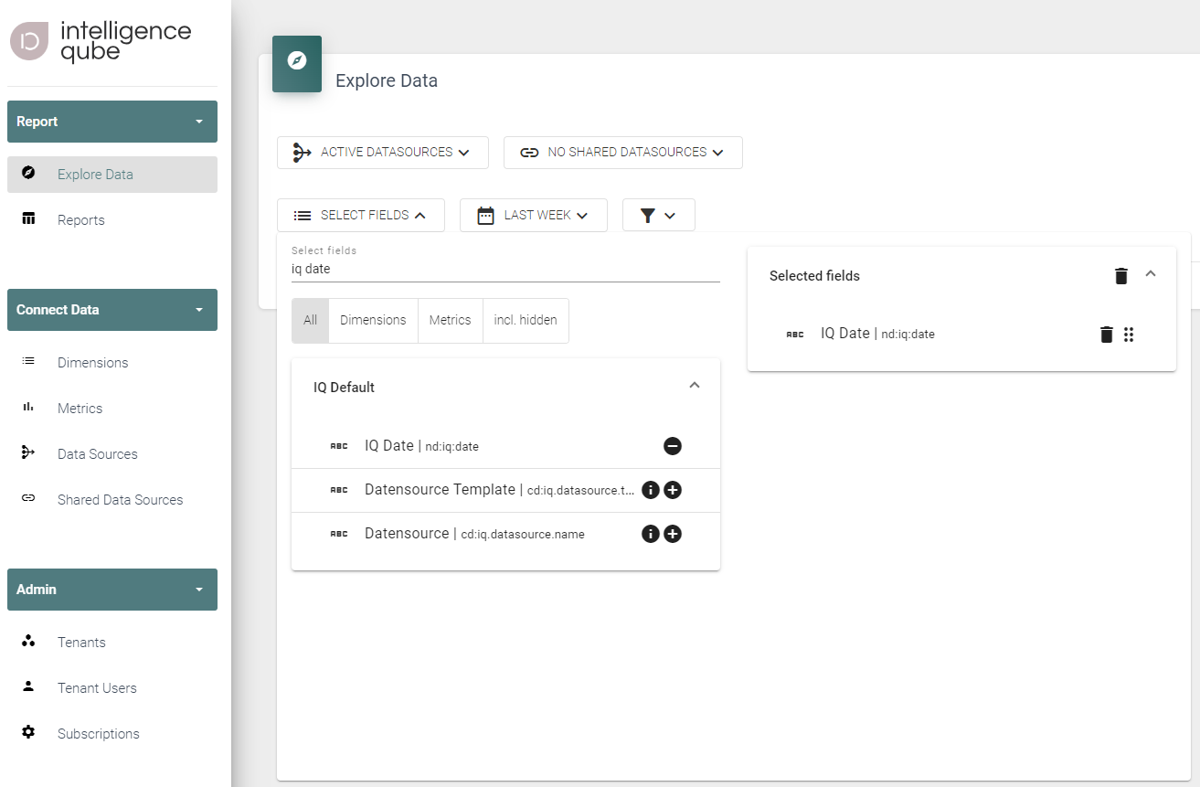 Daten in Intelligence Qube sind nach Tagen geschlüsselt. IQ schlüsselt alle Daten auf die Dimension "IQ Date":
