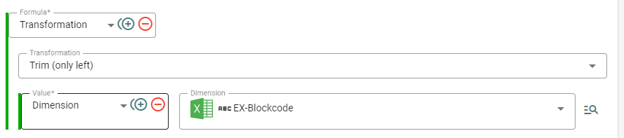 Beispiel: Bei der Dimension EX-Blockcode werden die Leerzeichen vor dem eigentlichen Wert entfernt.