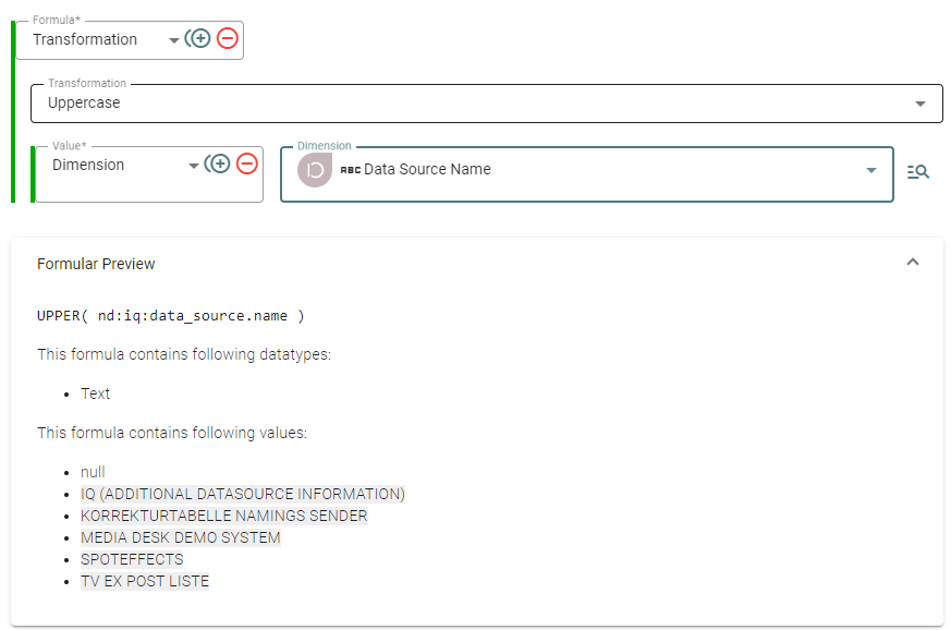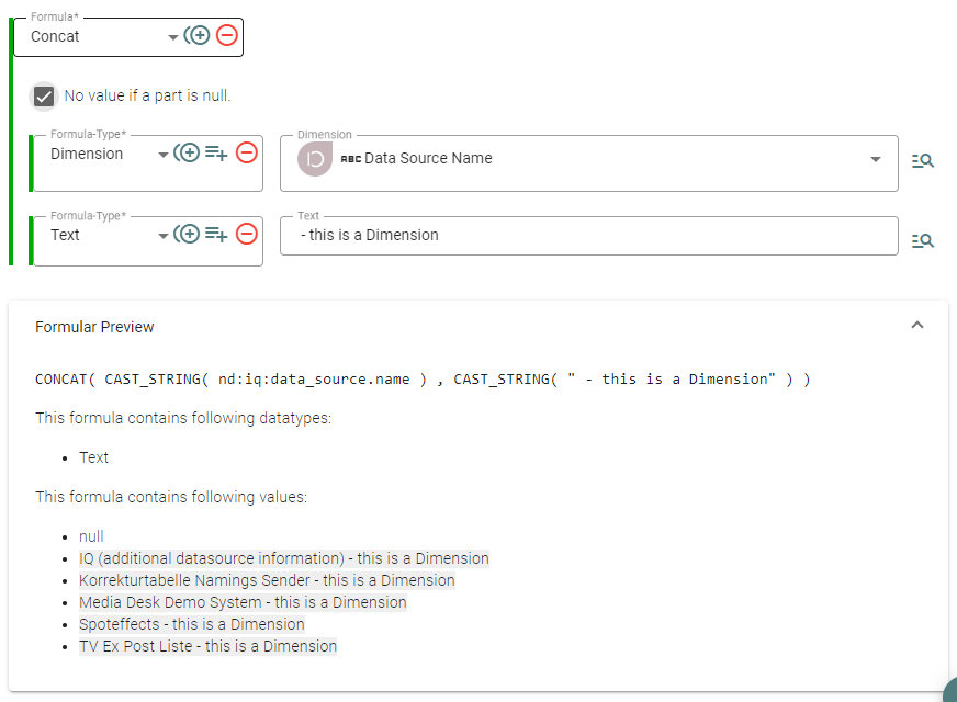 In IQ haben Sie die Möglichkeit, individuelle Formeln oder Werte basierend auf dem Typ der Datenquelle als Dimension auszugeben. Diese Flexibilität ermöglicht es, spezifische Anforderungen und Logiken für unterschiedliche Arten von Datenquellen zu definieren.