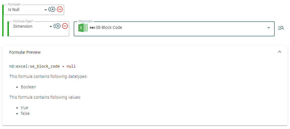Beispiel: Wenn das Feld "SE-Block Code" keinen Wert hat, ist der Wert wahr: