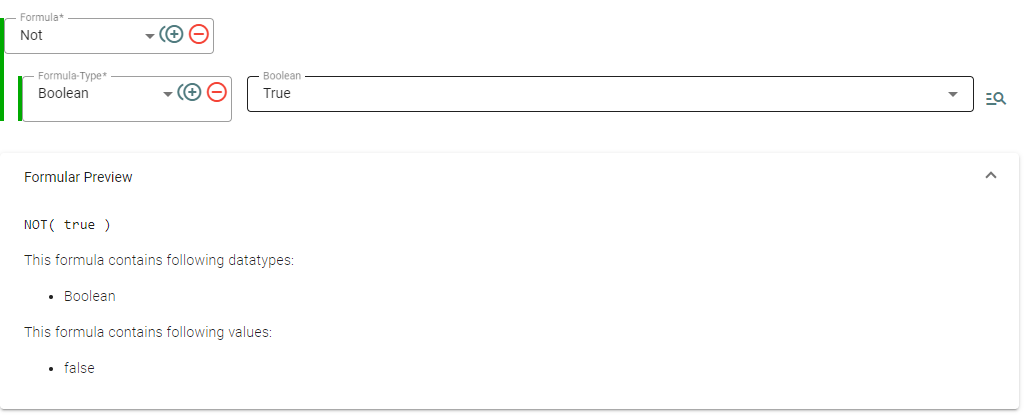 Diese Funktion kann auf Boolean Felder / Ergebnisse angewendet werden und kehrt den Boolean Wert um. Beispiel: