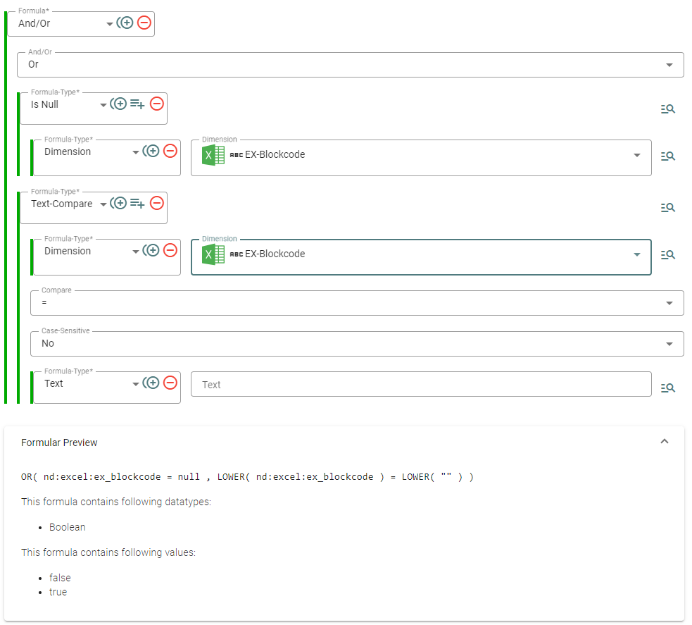 Minus (-): Entfernt den aktuellen Block. Sollte der Block Unterblöcke enthalten, bleiben diese erhalten, was eine feingranulare Anpassung von Formeln erlaubt.
